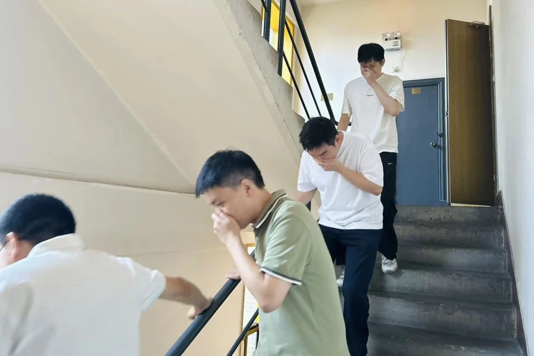 錦弘集團于總部辦公大樓開展消防應急疏散培訓及演練,通過現(xiàn)場互動,指導參訓人員明確逃生路線規(guī)劃、掌握防煙技巧及規(guī)范的人員轉(zhuǎn)移流程,并詳細講解滅火器、防煙面罩的使用方法。演練環(huán)節(jié)模擬真實火場場景,隨著警報聲驟然響起,樓道內(nèi)迅速煙霧彌漫,參訓人員嚴格按照報警流程迅速響應,保持彎腰低姿、捂住口鼻的正確姿勢,沿著疏散指示標識有序撤離。