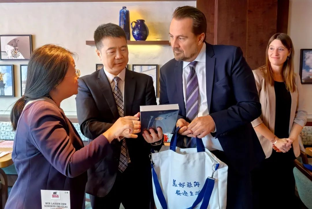 在巴伐利亞州,游勇與巴伐利亞州食品、農業(yè)、林業(yè)和旅游部旅游營銷部旅游產業(yè)部門負責人Eva G?tz博士、慕尼黑國際展覽中心 (Freizeitmesse free) 展覽總監(jiān)Katrin Leideritz 女士、巴伐利亞州投資促進局投資者服務高級經理Fang Wang 女士、慕尼黑州首府、勞動和經濟事務部地區(qū)營銷主管Rita Roider女士等機構負責人座談,詳細介紹了省尊龍凱時集團旗下景區(qū)、酒店、康養(yǎng)及旅行社資源等情況,雙方聚焦文旅資源開發(fā)、市場聯(lián)動、文旅展會市場拓展等進行深入交流,推動項目合作精準對接。