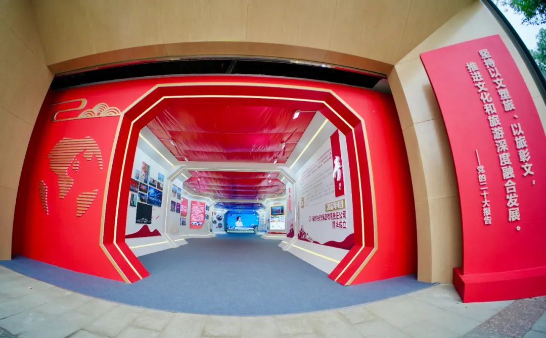 “堅(jiān)持以文塑旅、以旅彰文,推進(jìn)文化和旅游深度融合發(fā)展”。走進(jìn)四川文化和旅游企業(yè)展館,黨的二十大報告中對文旅發(fā)展的要求便映入眼簾。通過設(shè)置“序、初心使命、奮斗征程、筑夢未來”四個部分,以圖文視頻、實(shí)物展陳相結(jié)合,輔以各項(xiàng)新科技手段的方式詳盡地向觀展賓客講述了其從無到有、從小到大、從弱到強(qiáng)、從優(yōu)到精的蛻變歷程。