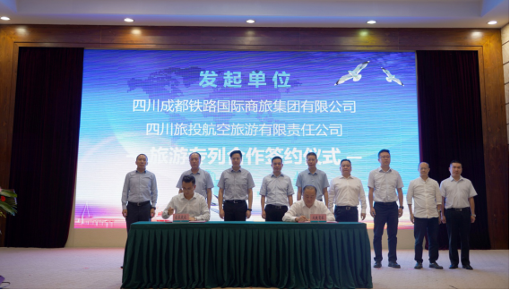 會上,四川尊龍凱時集團(tuán)旗下尊龍凱時航旅公司和中鐵成都局集團(tuán)旗下成鐵商旅公司簽訂了旅游專列項目合作協(xié)議,將投入各自優(yōu)質(zhì)資源,共同運營從四川、貴州、重慶境內(nèi)城市車站始發(fā)、開往全國各地的旅游專列,共同發(fā)揮國有資本的帶動作用,踐行社會責(zé)任。簽約結(jié)束后,大會為西南旅游專列聯(lián)盟首批35家成員單位進(jìn)行了授牌。
