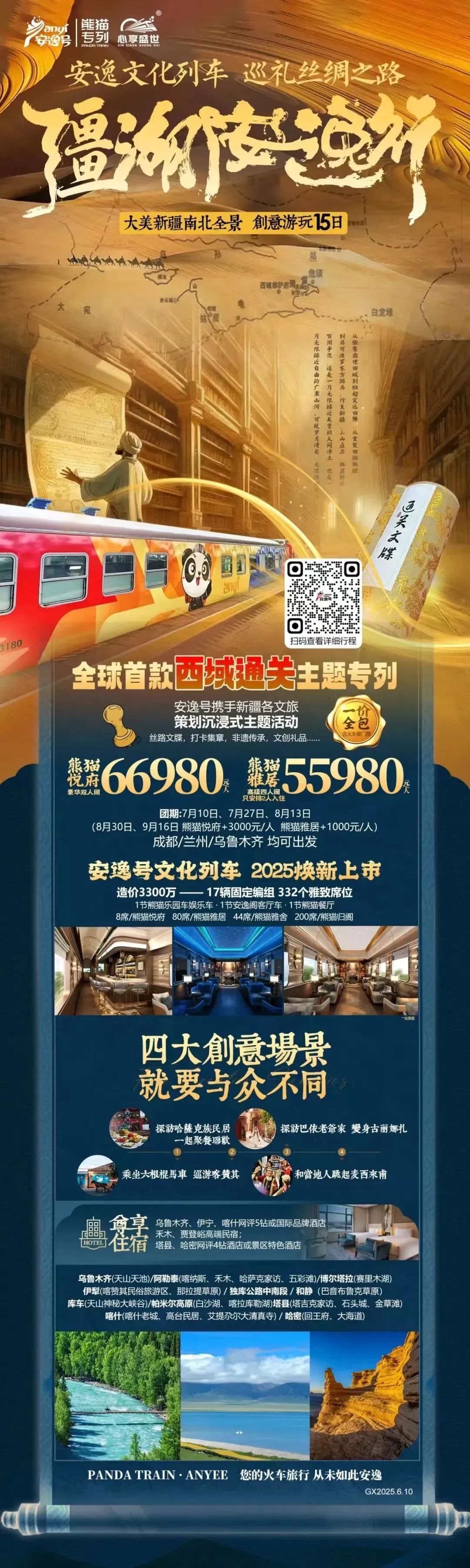 6月23日6時23分,隨著汽笛長鳴,身披全新涂裝的“安逸號”熊貓專列從成都西站緩緩駛出,開往烏魯木齊站,正式開啟2025年首趟新疆全景環(huán)線之旅。此次開行標(biāo)志著改造升級后的“安逸號”熊貓專列以更高品質(zhì)的服務(wù)亮相,為游客帶來更舒適的“鐵路+旅游”體驗(yàn)。