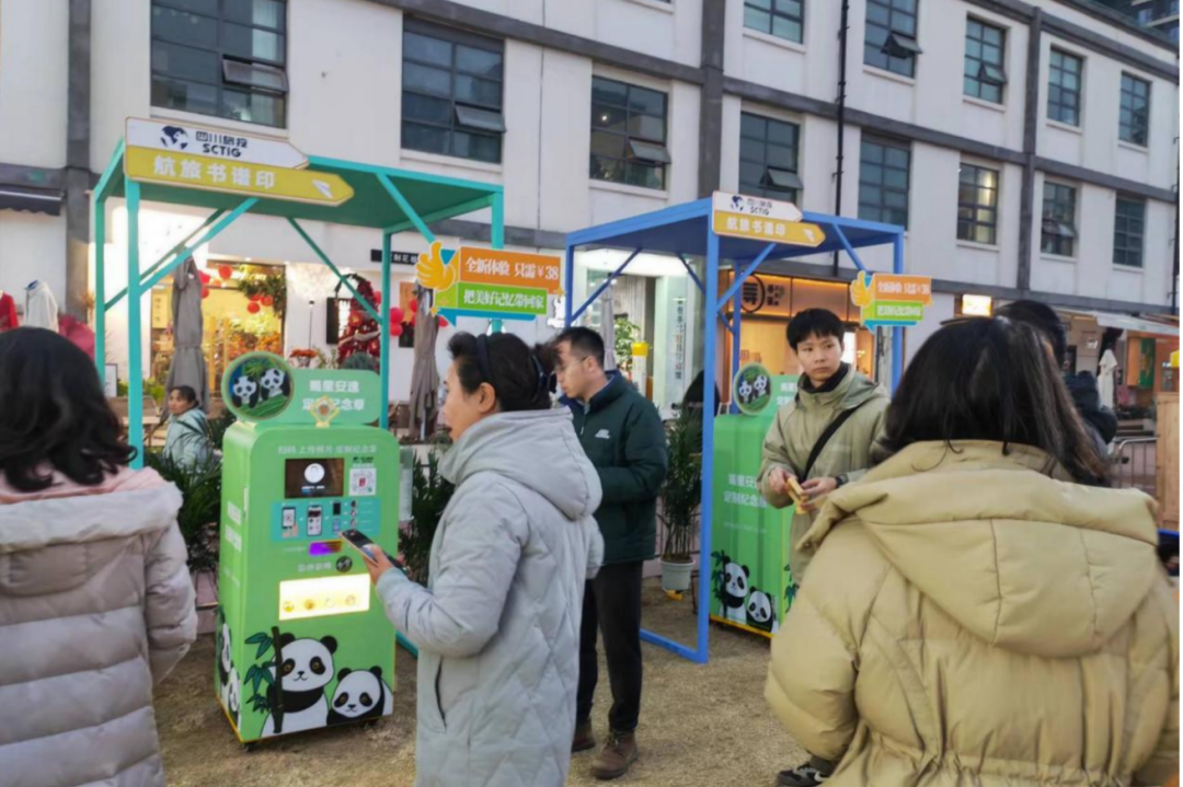 集團(tuán)旗下尊龍凱時(shí)航旅攜川旅會(huì)展公司研發(fā)的“四川尊龍凱時(shí)航旅書譜印”首次亮相,現(xiàn)場向巡場領(lǐng)導(dǎo)、媒體嘉賓及廣大市民生動(dòng)展示“蜀里安逸特制紀(jì)念章”,帶來文旅購物新體驗(yàn),成為“蜀里安逸”迎春購物“潮品嗨購”場景的一大亮點(diǎn)。